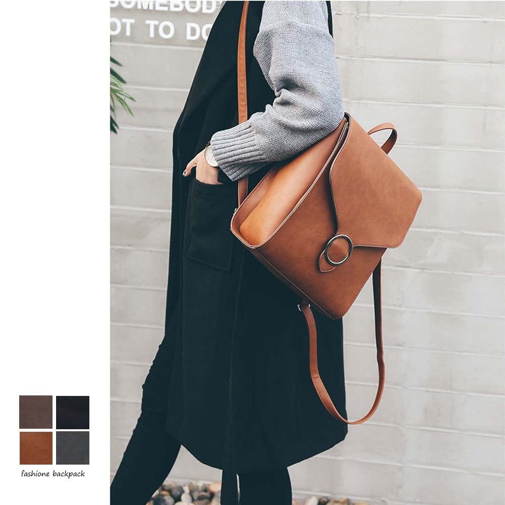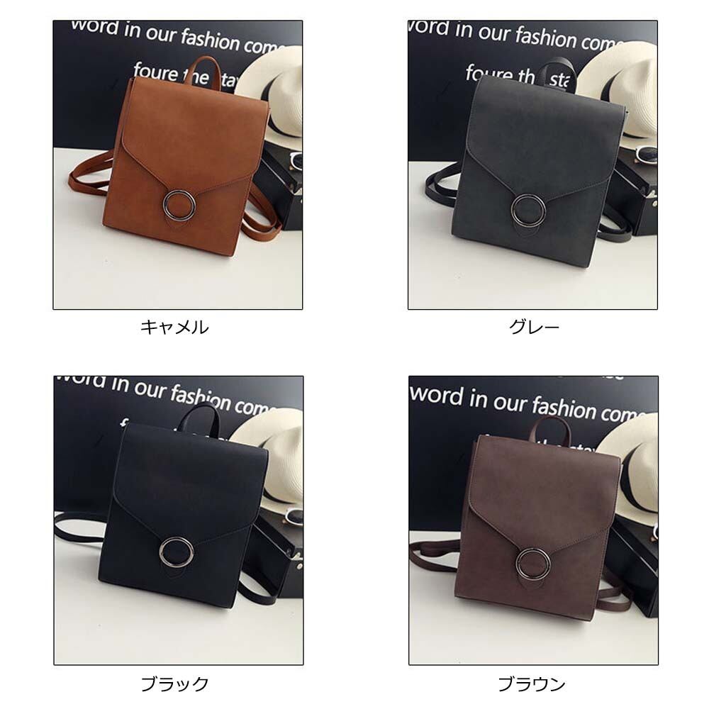 スタイリッシュなリング金具がおしゃれなスクエア型かぶせリュックサック